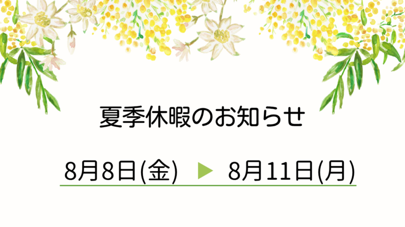 夏季休暇のお知らせ